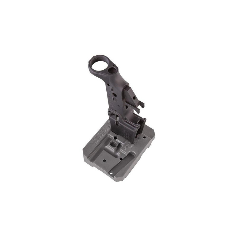A durable gunsmithing workbench tool specifically designed for AR-15 assembly and disassembly. Made from non-marring urethane with multiple notches, grooves, and holes on both sides to safely secure upper receivers, lower receivers, front sights, and charging handles during maintenance. Dimensions are 9.0" L x 6.2" W x 1.7" H.