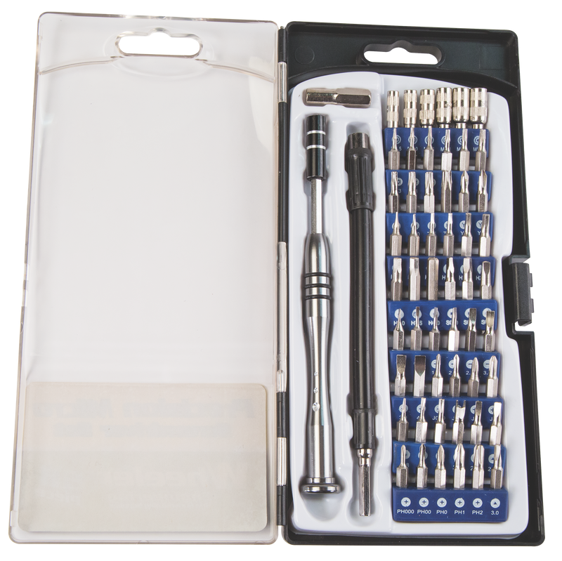 This 58-piece screwdriver set features high-quality chrome plated steel bits designed for precision work on firearms and firearms components. The set includes an extendable handle that extends from 3-3/4" to 5-1/2", a 5-3/4" flexible extension shaft for hard-to-reach areas, and comes organized in a convenient carry/storage case with individual bit markings for maximum fastener engagement.