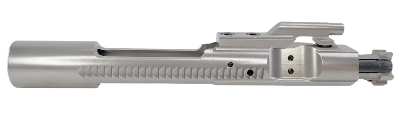 M16 bolt carrier group chambered in 5.56 NATO with nickel finish for AR15/M16 platforms. This assembly is compatible with mil-spec AR-15 and M16 receivers and features a nickel coating for enhanced corrosion resistance and easier cleaning.