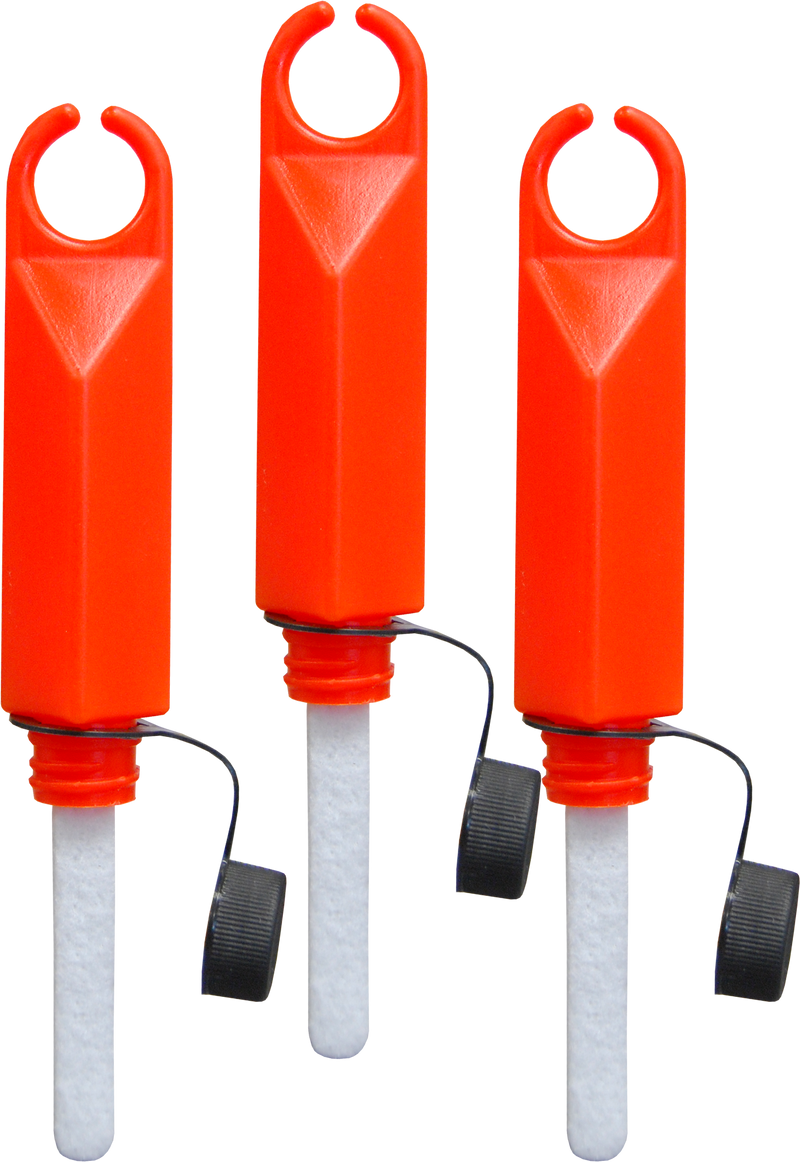 The Quik-Wiks are compact scent dispensers featuring a patented rain-shedding design and non-reactive felt wicks with screw-on seals for convenient, practical use. Designed for deer hunting, these biodegradable felt wicks effectively disperse scent for several hours and are packaged as a 3-pack. The unscented wicks allow hunters to apply their choice of scent attractant.