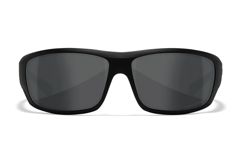 The Wiley X Omega is a medium/large polycarbonate lens shooting glass featuring gray lenses with 100% UV protection and polarization to reduce glare. The matte black frame is constructed from durable Triloid Nylon material, designed for tactical and shooting applications.