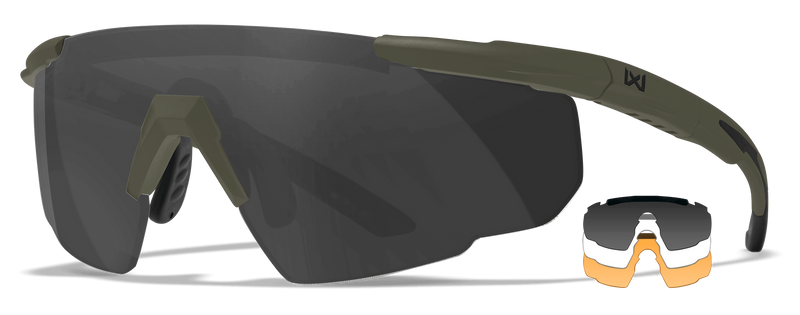 The Wiley X Saber Advanced is a tactical eyewear designed for shooting and outdoor use. Features multiple lens options including gray, clear, rust, and OD green to suit various lighting conditions. Built to military standards for durability and impact resistance.