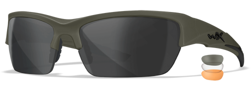 The Wiley X Axe Captivate is a tactical eyewear designed for shooting and outdoor activities. Features green mirror lenses with clear gray backup lenses for versatile lighting conditions. Built to military standards with impact-resistant construction for reliable eye protection.