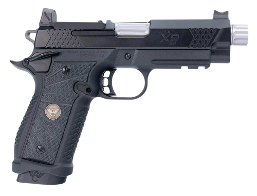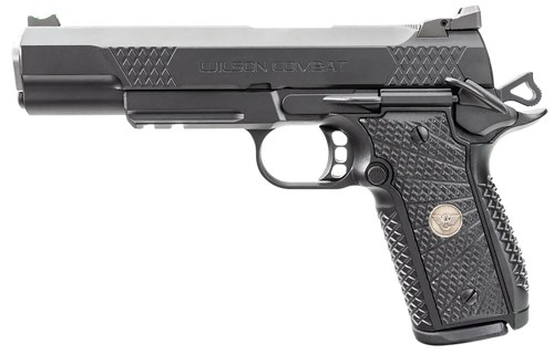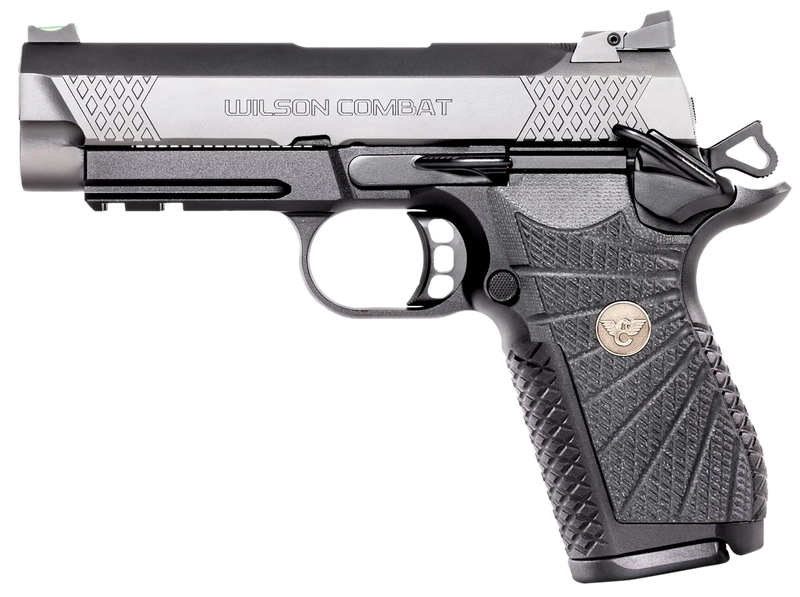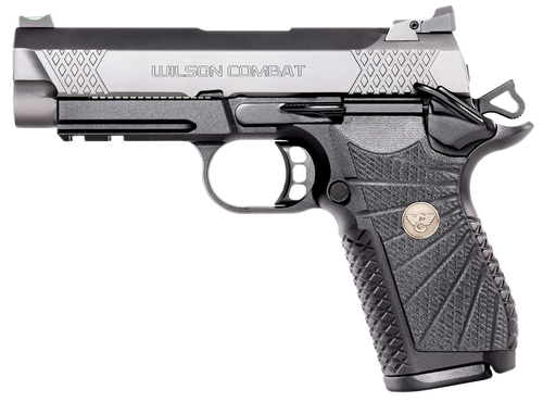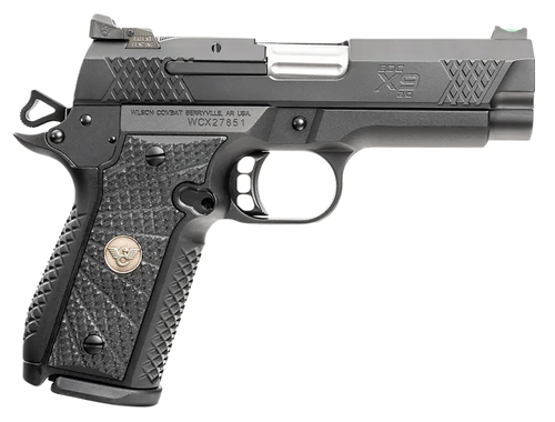 Semi-automatic single action 1911-style pistol chambered in 9mm Luger with a 4" stainless steel tri-top cut barrel and 15+1 round capacity. Features ambidextrous thumb safety, black G10 starburst grips, Lightrail, adjustable rear sights with fixed front sight, and Wilson Combat's X-TAC frontstrap/backstrap treatment. Includes two 15-round magazines and weighs approximately 29 oz.