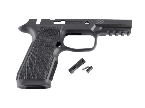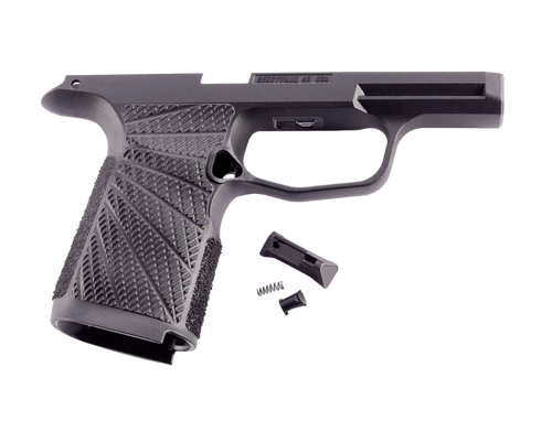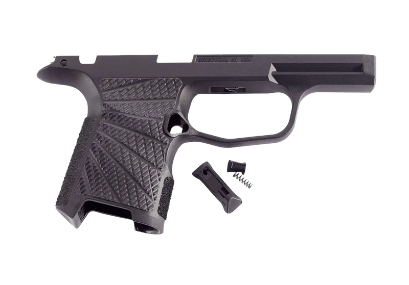 Wilson Combat grip module designed for Sig P365 pistols with manual safety. Constructed from molded polymer to improve grip and control recoil. Compatible with Sig P365, P365SAS, P365X, and P365XL models.
