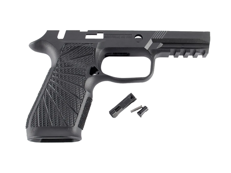 This is a black polymer grip module designed for the Sig Sauer P320 Carry with manual safety. Wilson Combat reengineered the P320 grip frame to optimize ergonomics and recoil control with improvements in shape and texture.