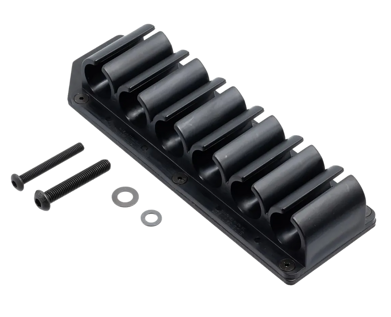 The Wilson Combat SideSaddle is a 6-round shell holder designed for Remington 870, 1100, and 1187 shotguns. Constructed from black polymer with an aluminum mounting plate, it attaches via a mounting plate system and measures 6.0" x 1.7" x 1.5". This accessory provides quick access to additional shotgun rounds for tactical or sport shooting applications.