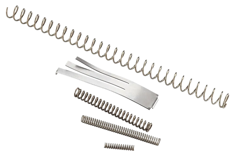 Complete spring kit for full-size 1911 pistols containing all springs needed for assembly or upgrade. Features heat-treated music wire construction with extra power recoil springs rated for standard and high-velocity loads, plus a reduced power hammer spring to improve trigger pull.