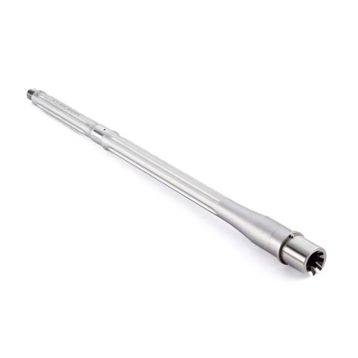 This Wilson Combat Super Sniper barrel is a 20" stainless steel barrel chambered in .308 Winchester with a 1:10 twist rate, designed for AR-10 platform rifles. The barrel features a bead blasted finish, fluted design for reduced weight, and a 5/8-24 threaded muzzle. Made from 416R rifle-rated stainless steel, it delivers superior accuracy and durability for long-range shooting applications.