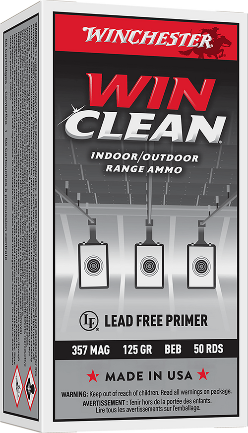 Winchester Winclean 357 Sig ammunition features a 125 grain brass enclosed base bullet design. This load delivers 1350 feet per second muzzle velocity and 506 foot-pounds of muzzle energy, offering reliable performance in 357 Sig chambered pistols.