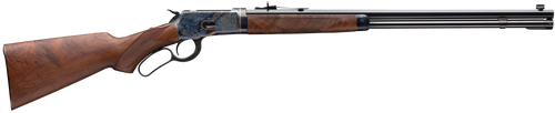 Winchester Model 1892 Short Rifle chambered in .44 Rem Mag with a 20" blued barrel and lever action. Features a 10+1 round capacity, satin oiled Grade I walnut straight grip stock, adjustable buckhorn rear sight with gold bead front sight, and tang safety. Weighs 6 lbs with an overall length of 37.5".