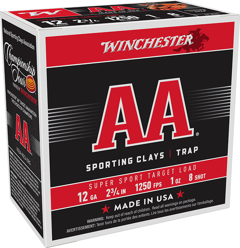 Winchester AA Sporting Clay Plastic 12 Gauge 2.75" #8 Shot 25 Round Box - AASC12508