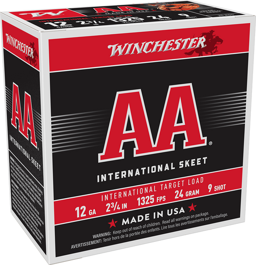 Winchester AA International Target shotshells in 12 gauge with 2.75" cases and #7.5 lead shot deliver consistent performance for target shooting and sport clay applications. These shells feature hard shot for tighter patterns, specially designed wads to reduce recoil, and a reliable hull for excellent reloadability. Muzzle velocity is 1325 fps.