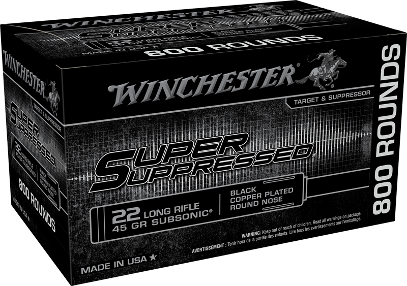 Winchester Super Suppressed Brass .22 LR 45gr Copper Plated Round Nose 800 Round Box - SUP22LRB
