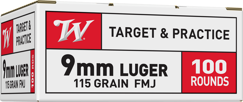 Winchester USA 9mm Luger ammunition features 115 grain full metal jacket bullets designed for training and target practice. With a muzzle velocity of 1190 fps and muzzle energy of 362 ft lbs, this ammunition provides reliable performance with smooth feeding and reduced barrel fouling. Packaged 100 rounds per box with 10 boxes per case.