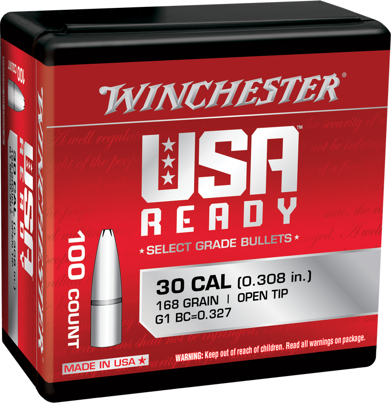 Winchester Centerfire Rifle 308 Win 168gr Open Tip Reloading Bullets - WBR30168