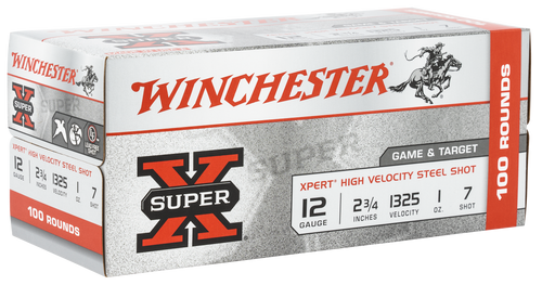 Winchester Xpert High Velocity 12 Gauge shotshells feature 1oz of #6 shot in a 2.75" steel casing, delivering 1450 fps muzzle velocity. These high-velocity loads are suitable for hunting and sport shooting applications. Sold 25 rounds per box.