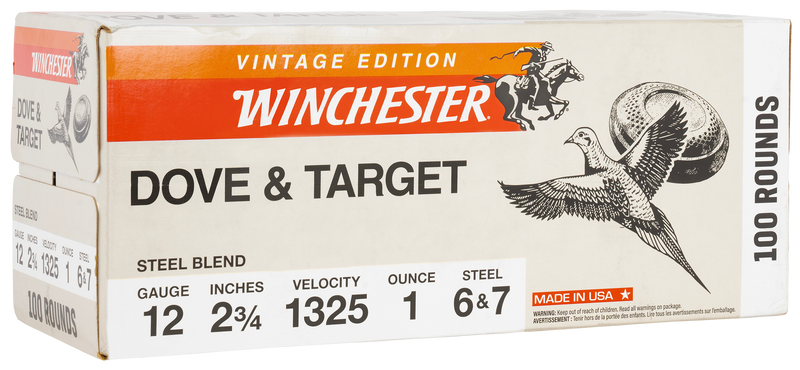 Winchester Super X Steel shotshells in 12 gauge, 2.75" length, loaded with 1 oz of #6 and #7 steel shot blend at 1325 fps. Designed for dove and target shooting where non-toxic ammunition is required, these shells feature consistent primers and clean-burning powder for reliable performance and dependable cycling.