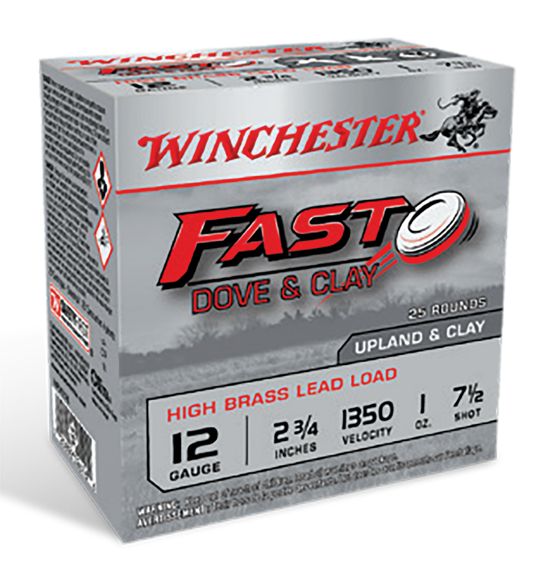 Winchester Fast Dove & Clay shotshells are 12 gauge high brass shells loaded with 1 ounce of #7.5 lead shot at 1350 fps. Designed for upland hunting and clay shooting, these 2.75" shells deliver consistent performance for dove, quail, and target applications.