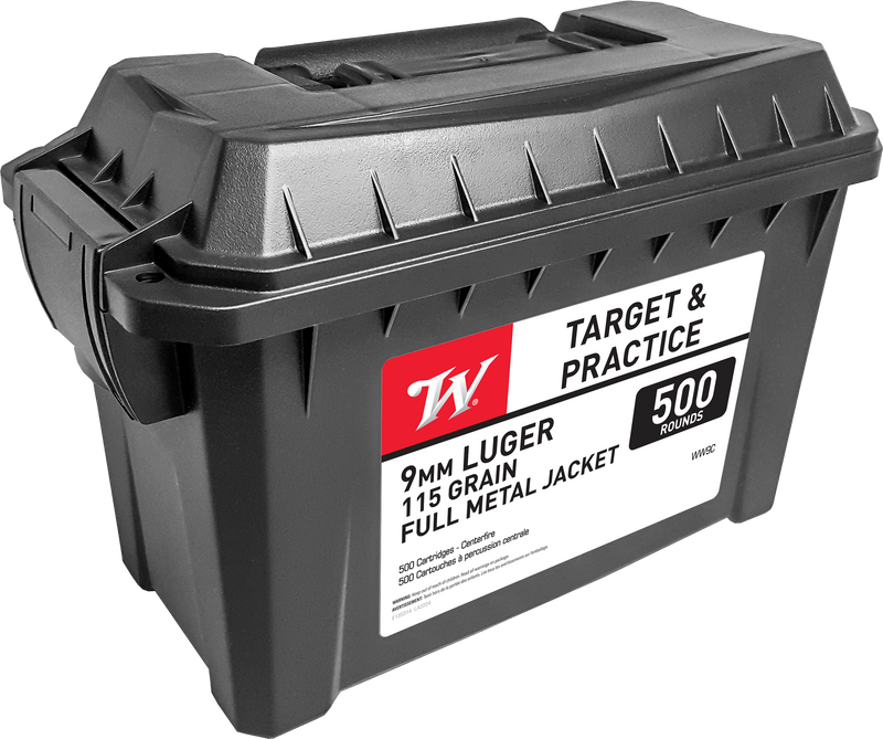Winchester USA 9mm Luger 115gr FMJ Handgun Ammo 500rd Can - WW9C