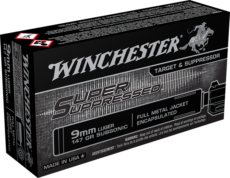 Winchester Super Suppressed 9mm Luger 147gr FMJ Encapsulated Handgun Ammunition 50rd Box - SUP9