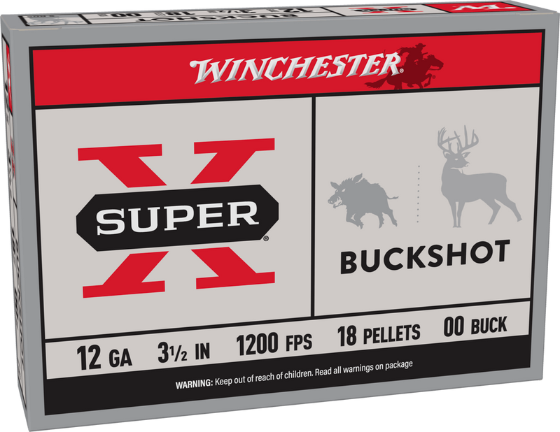 Winchester Super-X 12 Gauge 3.5" magnum shotshells deliver 18 pellets of 00 buckshot at 1200 fps muzzle velocity. With plastic high-brass cases, these rounds are designed for hunting and target shooting applications. Each box contains 5 rounds, sold 50 boxes per case.