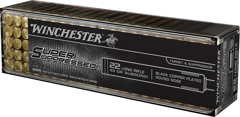Winchester Super Suppressed Brass .22 LR 45gr Black Copper Plated Round Nose 100 Round Box - SUP22LR