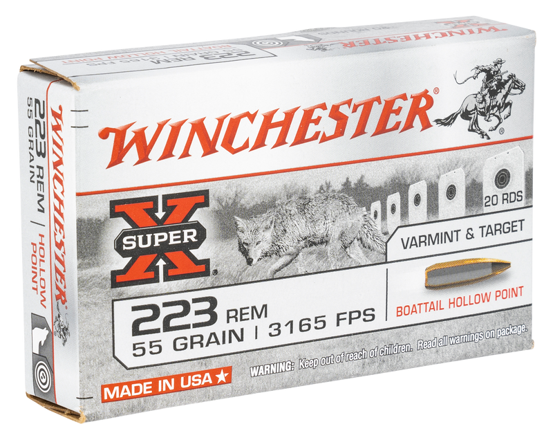 Winchester Super-X 223 Rem 55gr Boat Tail Hollow Point Rifle Ammo, 20/Box - W223HP55