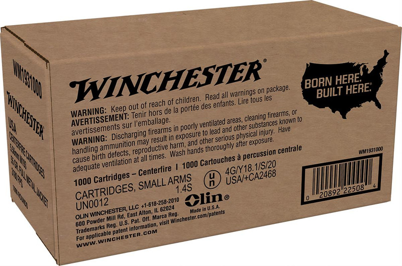 Winchester USA M193 5.56x45mm NATO 55gr Full Metal Jacket 1000rd Rifle Ammo - WM1931000
