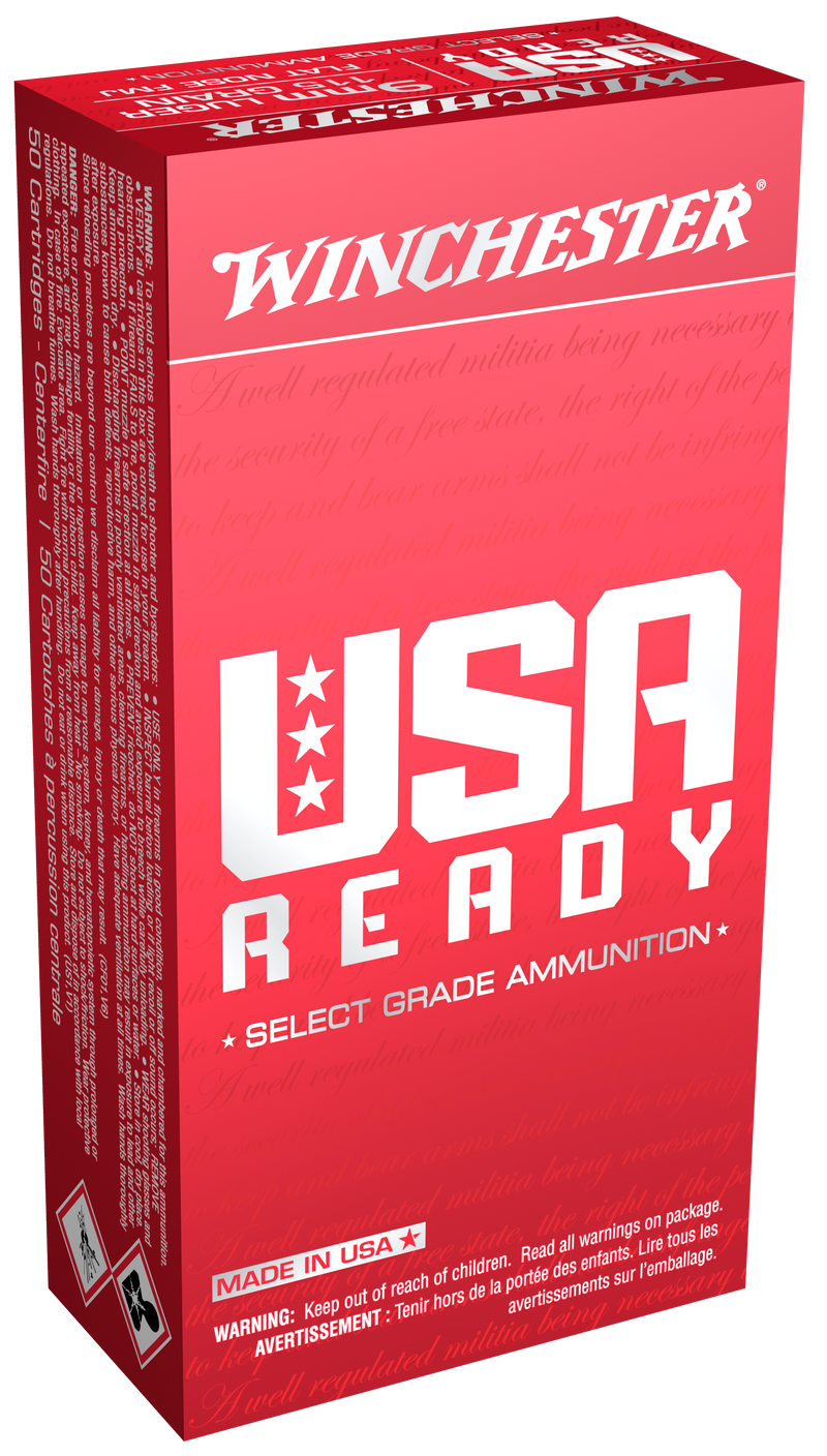 Winchester USA Ready 9mm Luger 115gr FMJ-FN Handgun Ammo, 50 Rounds - RED9