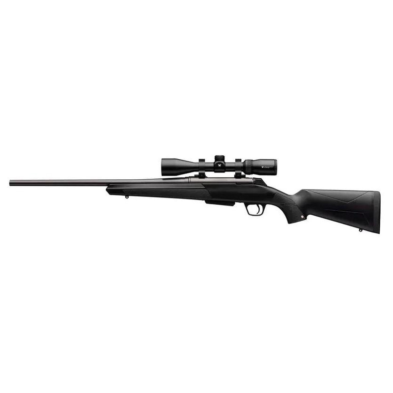 The Winchester XPR is a bolt-action rifle chambered in 7mm-08 Rem with a 20" precision button-rifled barrel and 3-round detachable box magazine capacity. This compact combo includes a mounted Vortex Crossfire II 3-9x40 scope with BDC reticle, MOA trigger system, and drilled/tapped receiver. Features a synthetic black stock with 13" length of pull, Permacote black finish, and weighs 6 lbs. 12 oz.