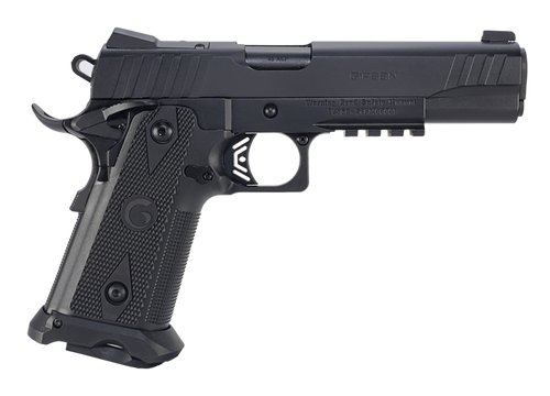 The EAA Witness 2311 is a single-action semi-auto pistol chambered in 10mm with a 5" barrel and 15+1 round capacity. Built on a steel frame with fixed contrast sights, it features an optics-ready slide, extended beavertail, and accessory rail. Overall length is 8.75" and weight is 1.65 lbs.