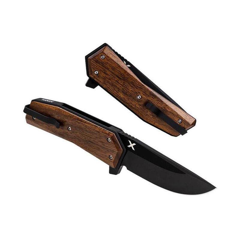 The Woox Leggenda is a premium EDC folding knife featuring a 3.5" D2 carbon steel drop point blade with a liner lock mechanism. The handle combines carbon fiber and real American walnut wood scales, with an overall length of 8.25" and weight of 6 oz. This Italian-made knife blends traditional craftsmanship with modern materials for high-performance everyday carry.