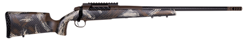 The Weatherby 307 Alpine CT is a bolt-action rifle chambered in 257 WBY Mag with a 24" BSF carbon fiber barrel featuring a directional self-timing brake and 5/8x24 threaded muzzle. Built on the modern Model 307 action with drilled and tapped receiver, it pairs a Peak 44 Bastion carbon fiber stock with brown and tan grip panels and Picatinny rail. Weighing just 6.2 lbs with an overall length of 46", this ultra-light rifle combines precision engineering with practical field handling.
