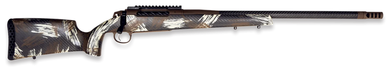 The Weatherby 307 Alpine CT is a bolt-action rifle chambered in 7mm Backcountry with a 16" threaded barrel and muzzle brake. Built on Weatherby's modern 2-lug Model 307 platform, it features a carbon fiber stock with Peak 44 Bastion grip, TriggerTech Field trigger, and Picatinny rail for optics mounting. Weighing 5.9 lbs with an overall length of 38", this short-barreled rifle is designed for backcountry hunting and field use.