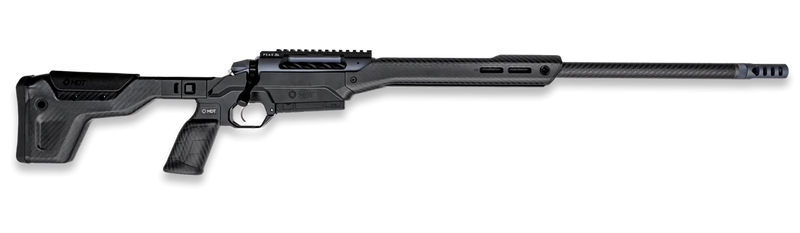 Weatherby 307 Alpine MDT Carbon is a bolt-action rifle chambered in .308 Win with a 20" threaded BSF carbon fiber barrel and 1-in-10" twist rate. Features an MDT HNT26 carbon fiber chassis system, TriggerTech Field trigger, Accubrake DST muzzle device, and weighs 6.5 lbs. Drilled and tapped for optics with AICS pattern magazine compatibility.