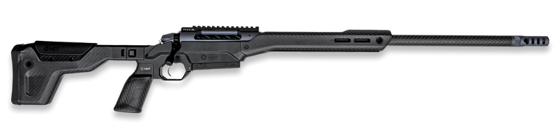 The Weatherby 307 Alpine MDT Carbon is a bolt-action rifle chambered in 7mm PRC with a 24-inch threaded BSF carbon fiber barrel and 1:8" twist rate. Built on the new Model 307 platform with an MDT HNT26 carbon fiber chassis system, it features TriggerTech Field trigger, Accubrake DST muzzle brake, and weighs just 6.6 lbs. The action is drilled and tapped for optics and accepts AICS-pattern magazines with 3+1 capacity.