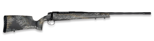 The Weatherby 307 Alpine ST is a bolt-action rifle chambered in 240 Wby Mag with a 24" spiral fluted, threaded barrel (5/8x24) and 4+1 capacity. Features a carbon fiber stock in green/tan, drilled and tapped receiver, and weighs 6.1 lbs with an overall length of 46".