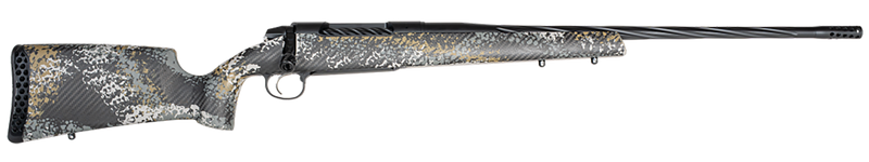 The Weatherby 307 Alpine ST is a bolt-action rifle chambered in 6.5 PRC with a 22" spiral fluted threaded barrel and 1-in-8" twist rate. Built on Weatherby's modern 2-lug fully cylindrical Model 307 action with a Carbon Fiber Peak 44 Bastion stock in green and tan, this lightweight rifle weighs 6.1 lbs and features a TriggerTech trigger, Accubrake DST muzzle brake, and is drilled and tapped for optics.