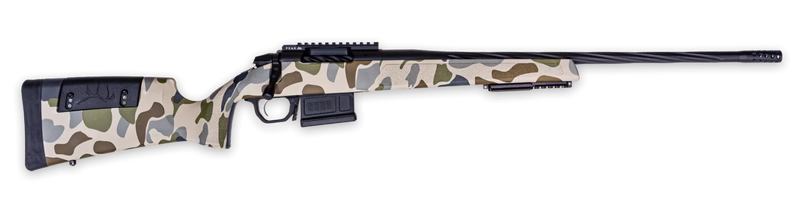 The Weatherby 307 Hush is a bolt-action rifle chambered in 25 Weatherby RPM with a 22" threaded barrel and 5+1 capacity. It features a custom Hush camo stock, Magpul bottom metal and magazine, Peak 44 Picatinny rail, and Arca/Pic rail adapter forend. Built on Weatherby's modern 2-Lug fully cylindrical action platform compatible with aftermarket accessories, this rifle weighs 7.3 lbs and has an overall length of 41.5".
