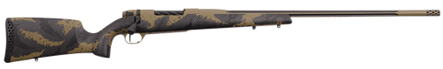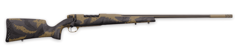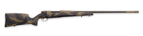 The Weatherby Mark V Apex is a left-hand bolt-action rifle chambered in 7mm PRC with a 26" fluted barrel and 3+1 capacity. Built on the iconic Mark V steel action with a carbon fiber stock, it features a TriggerTech trigger, Accubrake ST muzzle brake, and flat dark earth cerakote finish. The rifle is drilled and tapped for optics and weighs 7.5 lbs with an overall length of 48.25".