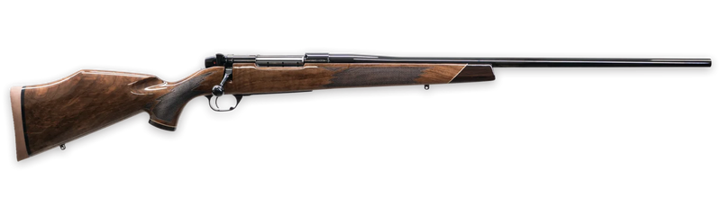 The Weatherby Mark V Deluxe is a bolt-action rifle chambered in 25 Weatherby RPM with a 24" barrel and 4+1 capacity. Features include a high-gloss blued finish, gloss AA walnut stock, TriggerTech trigger, and Pachmayr Decelerator pad. This rifle weighs 7 lbs and has an overall length of 42.63", with drilled and tapped receiver for optic mounting.