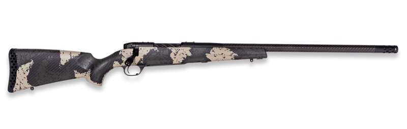 The Weatherby Mark V Backcountry Guide is a bolt-action rifle chambered in 25 Creedmoor with a 22" threaded barrel and 4+1 capacity. Features include a graphite black Cerakote finish, carbon fiber stock with green and tan accents, drilled and tapped receiver, and a Spartan Precision Gunsmith Kit. This lightweight rifle weighs 5.6 lbs and has an overall length of 42".