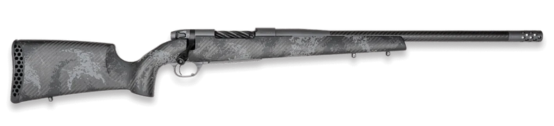 The Weatherby Mark V Live Wild Carbon is a 7mm Backcountry bolt-action rifle with a 20" BSF carbon fiber barrel featuring a 1:8" twist rate and threaded muzzle (5/8x24). It weighs 6.3 lbs and features a Peak 44 carbon fiber stock, TriggerTech trigger, Accubrake ST muzzle brake, and comes drilled and tapped for optics. With a 3+1 capacity and overall length of 42", this rifle is designed for hunters seeking a lightweight, high-performance platform.