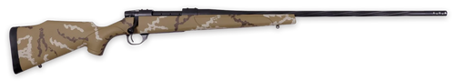 The Weatherby Vanguard Outfitter is a bolt-action rifle chambered in 7mm-08 Rem with a 24" spiral-fluted, threaded barrel and Accubrake muzzle brake. It features an adjustable two-stage trigger, integral recoil lug, Monte Carlo camo stock with tan polymer grip, and stainless steel receiver, weighing approximately 6.75-7.1 lbs. This rifle delivers the accuracy and reliability expected from Weatherby's proven Vanguard action platform.
