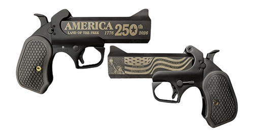 Single-action break-action derringer chambered in .45 Colt or .410 bore with a 4.25" flat-sided stainless steel barrel. Features B6 synthetic grips, fixed front and rear sights, rebounding hammer, and cross-bolt safety. Weighs approximately 25.6-28 oz. with a 6.25-6.75" overall length.