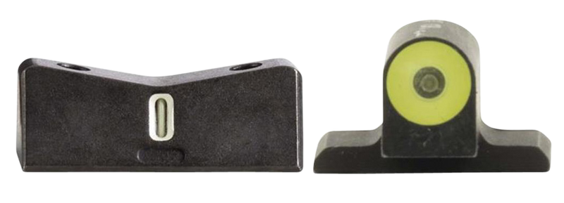 Night sight set featuring a large 0.188" tritium-powered green dot front sight with yellow outline and a low-profile rear sight with green tritium center and white outline bar. Designed for the Sig Sauer P365 handgun, these sights provide a simple dot-the-i sight picture with enhanced visibility in low-light conditions. CNC machined steel construction delivers durability and precise alignment.