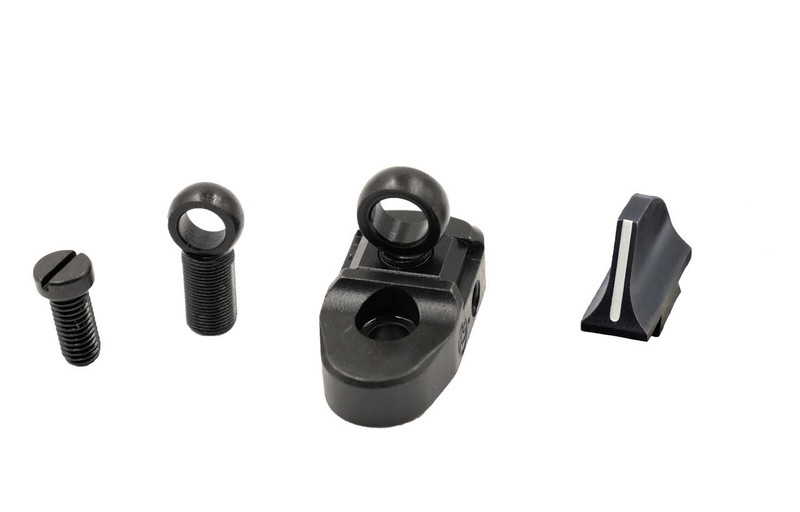 Precision machined steel ghost ring sight set designed for Henry Big Boy Carbine rifles in .44 and .45-70 calibers. Features a large ghost ring aperture with white stripe front sight, adjustable for windage and elevation, and visible across a wide range of lighting conditions. Uses dovetail mounting for secure attachment.