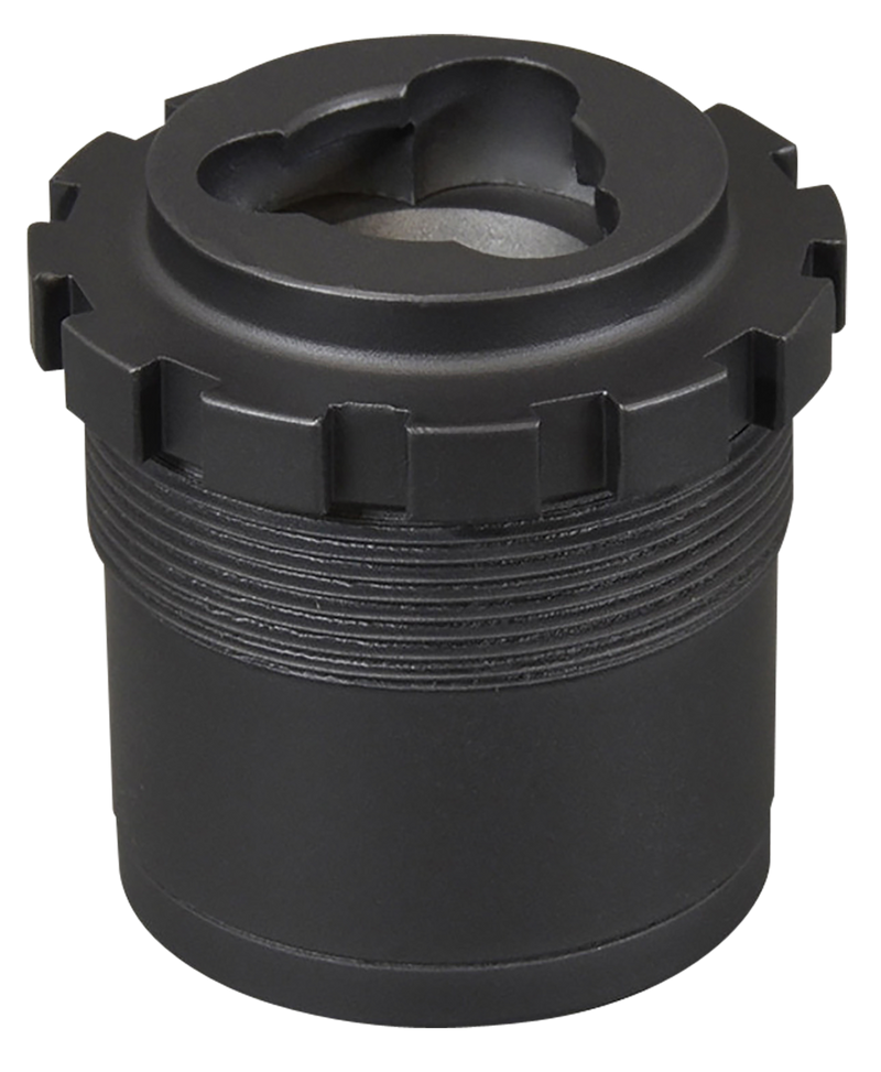 The YHM-2050 is a heavy-duty 3-lug suppressor mount adapter designed for handgun calibers, featuring aluminum and stainless steel construction with a matte black finish. This adapter replaces any existing 1-3/8" x 24 tpi mount and provides a quick-detach connection point for Yankee Hill Machine suppressors. Designed for direct installation onto compatible threaded barrels.
