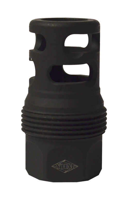 Quick-detach muzzle brake designed for suppressors with a 5/8x32 thread pitch and compatible with industry-standard HUB 1-3/8x24 mounting interfaces. Features an internal taper seal that locks suppressors in place while maintaining aesthetic design and ease of use. Available in multiple thread pitch variations to accommodate different firearm platforms.